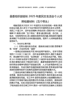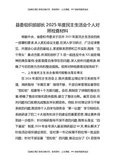 县委组织部部长2025年度民主生活会个人对照检查材料.docx