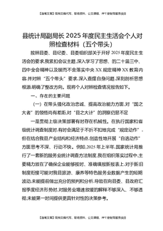 县统计局副局长2025年度民主生活会个人对照检查材料(五个带头).docx