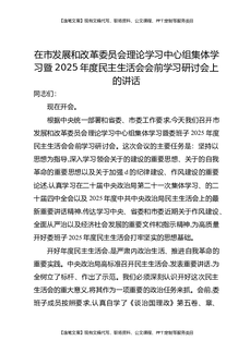 在市发展和改革委员会理论学习中心组集体学习暨2025年度民主生活会会前学习研讨会上的讲话.docx