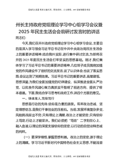 州长主持政府党组理论学习中心组学习会议暨2025年民主生活会会前研讨发言时的讲话.docx