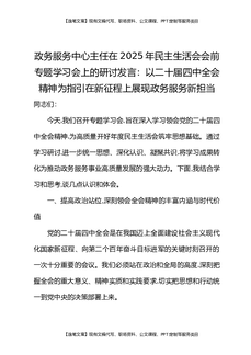 政务服务中心主任在2025年民主生活会会前专题学习会上的研讨发言:以二十届四中全会精神为指引在新征程上展现政务服务新担当.docx