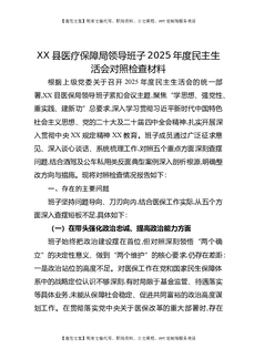 XX县医疗保障局领导班子2025年度民主生活会对照检查材料.docx