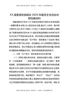 XX县委宣传部部长2025年度民主生活会对照检查材料.docx