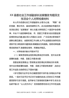 XX县委社会工作部副部长巡察整改专题民主生活会个人对照检查材料.docx