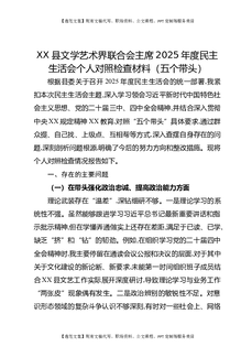 XX县文学艺术界联合会主席2025年度民主生活会个人对照检查材料(五个带头).docx