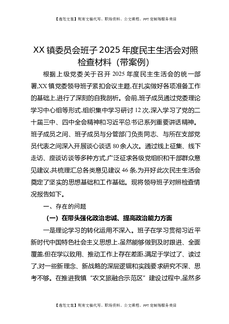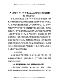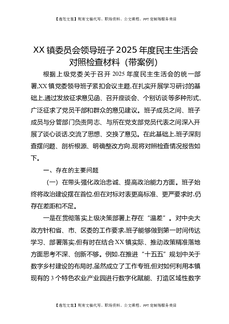 XX镇2025年度民主生活会班子对照检查材料(带案例).docx
