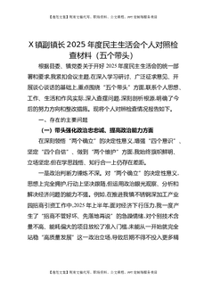 X镇副镇长2025年度民主生活会个人对照检查材料(五个带头).docx