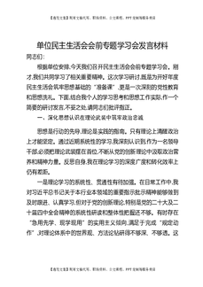单位民主生活会会前专题学习会发言材料.docx