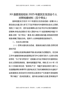 XX县委党校校长2025年度民主生活会个人对照检查材料(五个带头).docx