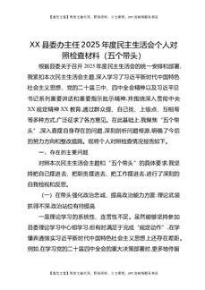 XX县委办主任2025年度民主生活会个人对照检查材料(五个带头).docx
