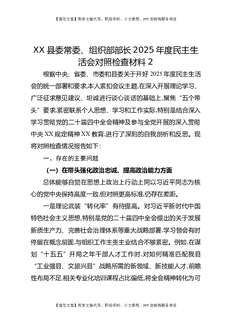XX县委常委、组织部部长2025年度民主生活会对照检查材料2.docx