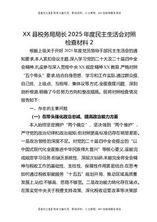 XX县税务局局长2025年度民主生活会对照检查材料2.docx