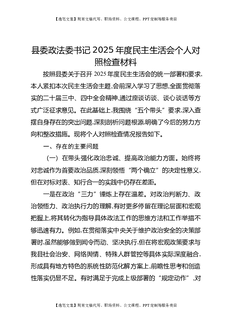 县委政法委书记2025年度民主生活会个人对照检查材料.docx