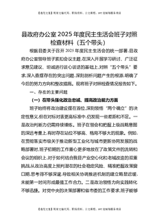 县政府办公室2025年度民主生活会班子对照检查材料(五个带头).docx