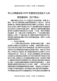 市人大常委会党组2025年度民主生活会个人对照检查材料(五个带头).docx