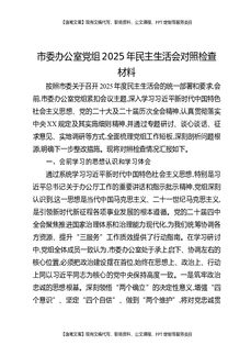 市委办公室党组2025年民主生活会对照检查材料.docx