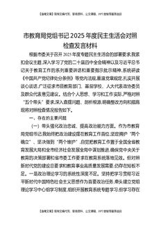 市教育局党组书记2025年度民主生活会对照检查发言材料.docx