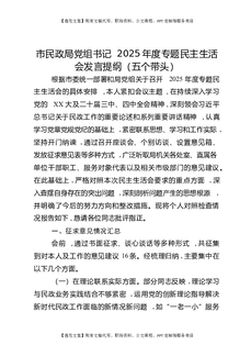 市民政局党组书记2025年度专题民主生活会发言提纲(五个带头).docx