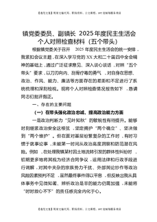镇党委委员、副镇长2025年度民主生活会个人对照检查材料(五个带头).docx