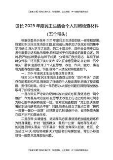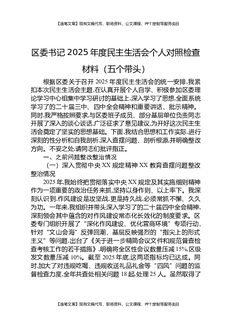 区委书记2025年度民主生活会个人对照检查材料(五个带头).docx