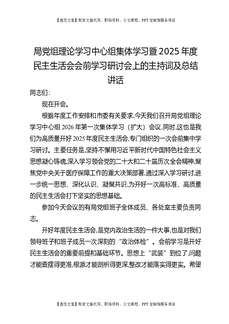 局党组理论学习中心组集体学习暨2025年度民主生活会会前学习研讨会上的主持词及总结讲话.docx