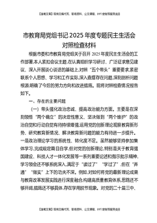 市教育局党组书记2025年度专题民主生活会对照检查材料.docx