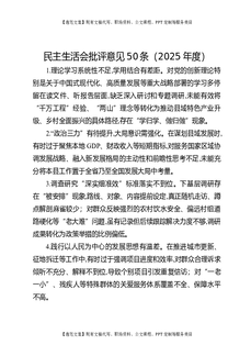 民主生活会批评意见50条(2025年度).docx