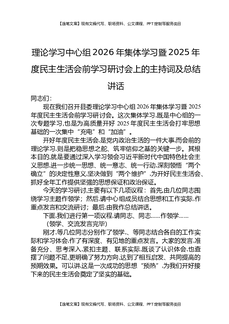 理论学习中心组2026年集体学习暨2025年度民主生活会前学习研讨会上的主持词及总结讲话.docx