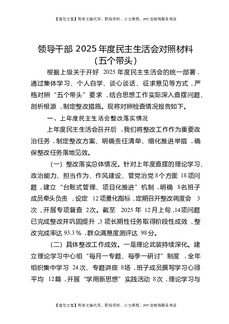 领导干部2025年度民主生活会对照材料(五个带头).docx