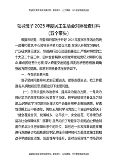 领导班子2025年度民主生活会对照检查材料(五个带头).docx