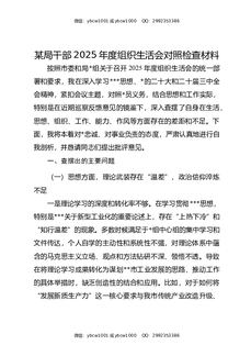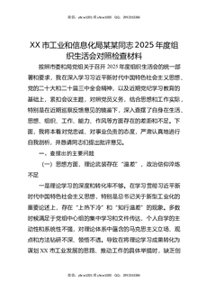 XX市工业和信息化局某某同志2025年度组织生活会对照检查材料.docx