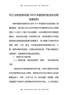 市工业和信息化局2025年度组织生活会对照检查材料.docx