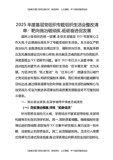 2025年度基层党组织专题组织生活会整改清单:靶向施治破顽疾,砥砺奋进促发展.docx