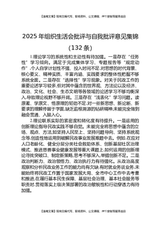 2025年组织生活会批评与自我批评意见集锦(132条).docx