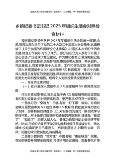乡镇纪委书记书记2025年组织生活会对照检查材料.docx