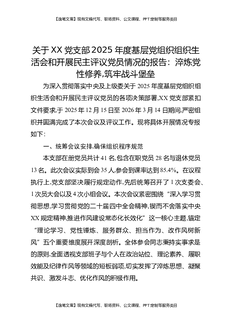 关于XX党支部2025年度基层党组织组织生活会和开展民主评议党员情况的报告:淬炼党性修养,筑牢战斗堡垒.docx