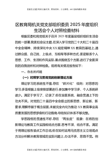 区教育局机关党支部组织委员2025年度组织生活会个人对照检查材料.docx