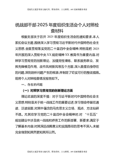 统战部干部2025年度组织生活会个人对照检查材料.docx