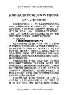 教育局机关党支部2025年度组织生活会班子对照检查材料.docx