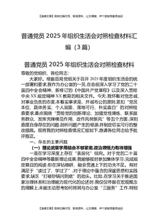 普通党员2025年组织生活会对照检查材料汇编(3篇).docx