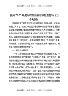 党员2025年度组织生活会对照检查材料(五个对照).docx