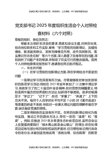 党支部书记2025年度组织生活会个人对照检查材料(六个对照).docx