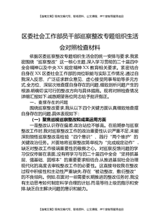 区委社会工作部党员干部巡察整改专题组织生活会对照检查材料.docx