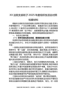 XX法院支部班子2025年度组织生活会对照检查材料.docx