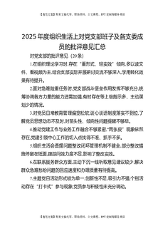 2025年度组织生活上对党支部班子及各支委成员的批评意见汇总.docx