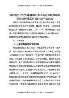 组织委员2025年度组织生活会对照检查材料:深查细照除沉疴,靶向施治铸忠诚.docx
