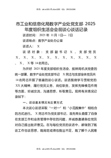 市工业和信息化局数字产业处党支部2025年度组织生活会会前谈心谈话记录.docx