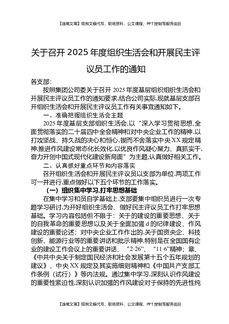 关于召开2025年度组织生活会和开展民主评议党员工作的通知.docx