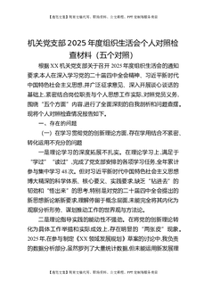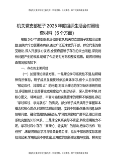 机关党支部班子2025年度组织生活会对照检查材料(6个方面).docx