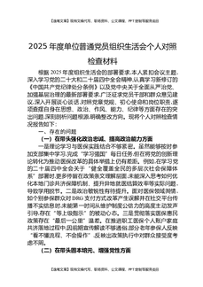 2025年度单位普通党员组织生活会个人对照检查材料.docx